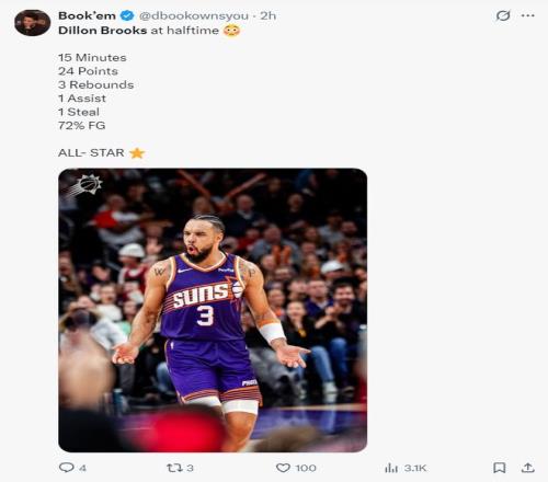 太阳记者布兰登-安瓦迪:无法用言语形容狄龙对太阳做出的贡献有多么巨大,他完全改变了凤凰城的文化,他对这个团队有着巨大的补充。